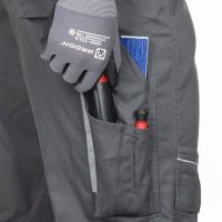 Pantalonii au buzunare laterale cu burduf, buzunar pentru telefonul mobil, un buzunar ascuns la piept si alte buzunare cu utilizari multiple. Compozitia materialului este potrivita pentru sezonul de vara si sustine circulatia naturala a aerului. Material: 65% poliester, 35% bumbac de 200 g/mp. Marimi: de la 46 la 64.