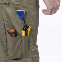 Pantalonii au buzunare laterale cu burduf, buzunar pentru telefonul mobil, un buzunar ascuns la piept si alte buzunare cu utilizari multiple. Compozitia materialului este potrivita pentru sezonul de vara si sustine circulatia naturala a aerului. Material: 65% poliester, 35% bumbac de 200 g/mp. Marimi: de la 46 la 64.