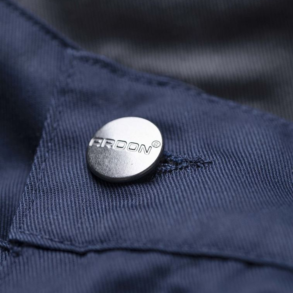Pantaloni salopeta de vara Summer talie bleumarin. Au o croiala sportiva si se adapteaza tuturor conditiilor de lucru. Genunchii au forma anatomica si au spatiu pentru genunchiere. Pantalonii au buzunare laterale cu burduf, buzunar pentru telefonul mobil si alte buzunare cu utilizari multiple.