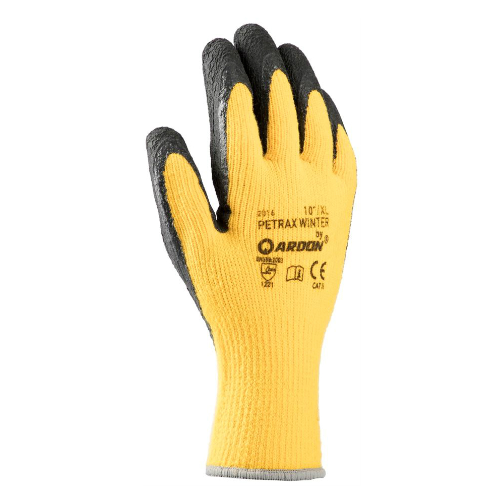 Manusi de iarna Petrax. Manusi confectionate din tricot acrilic, manusile de iarna Petrax au o rezistenta mecanica buna. De asemenea, ofera o flexibilitate excelenta si protejeaza impotriva microorganismelor. Impregnarea cu latex din palma ofera o prindere ferma si reduce astfel oboseala mainilor. Standard: EN 388 1131X, EN 511 X10. Marimi: de la 8 la 11.